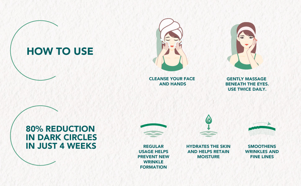 It contains proven & safe blend of herbs specially created to care for the delicate area around your eyes. It prevents the formation of under eye dark circles.